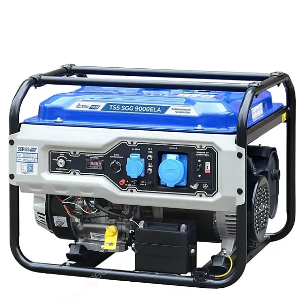 Бензиновый генератор TSS SGG 9000ELA с номинальной мощностью 8 кВт - это установка профессионального класса, которую можно успешно использовать как в роли страховки от перебоев с электричеством, так и в качестве главного источника энергии.