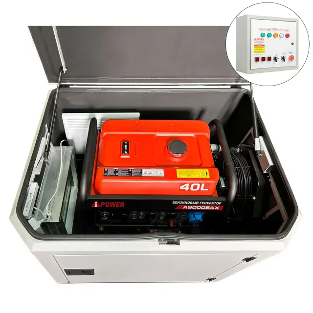 Генератор A-iPower A9000EAX в тихом зимнем кожухе 1200 RAL 7035 + блок автозапуска A-iPower 230В/400В 100А 8 ПИН