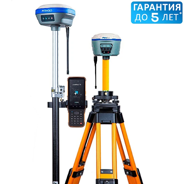 Приёмник PrinCe i50 используется в качестве базы, а приёмник PrinCe i30 с контроллером - в качестве ровера.
