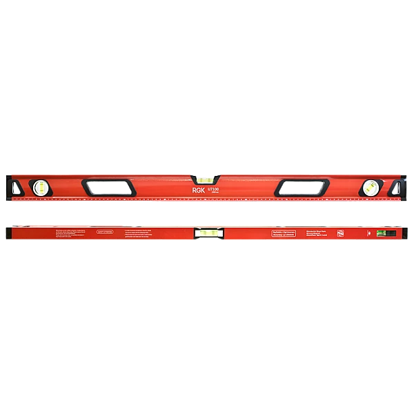 На узком верхнем ребре уровня RGK U7100 находится окошко, в котором с помощью системы зеркал отображается положение пузырька вертикального уровня. Благодаря этому, удобно контролировать вертикальные поверхности в узких нишах и в прочих труднодоступных местах.