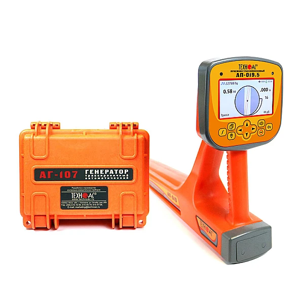 Комплект оснащен новейшим компактным автономным генератором АГ-107 со встроенными элементами питания, дисплеем и встроенной индукционной антенной, для трассировки коммуникации бесконтактным способом.